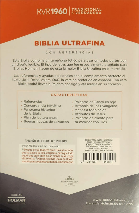 Biblia RVR 1960 Ultrafina Negra Piel Fabricada