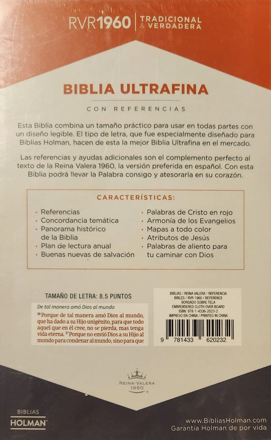 Biblia RVR 1960 Letra Grande Tamaño - Manual Bordado Sobre Tela