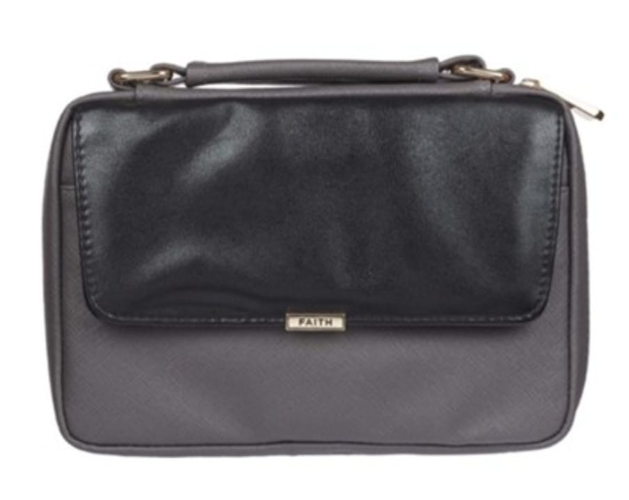 Leather-look Bible Cover with Handle, Faith Badge, Gray/Black, Large